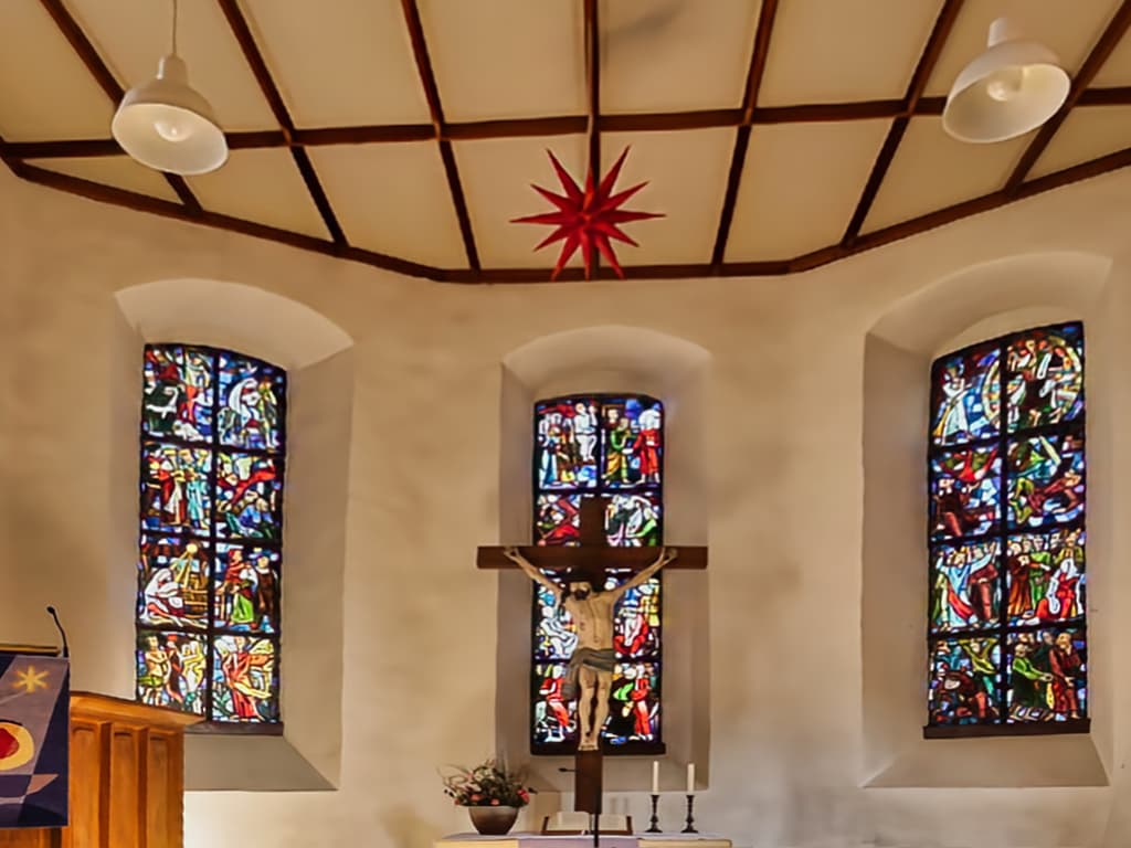Die Suche beginnt am heutigen Zustand der Kirche. Ein gut gestaltetes Gemeindezentrum mit der alten Kirche,